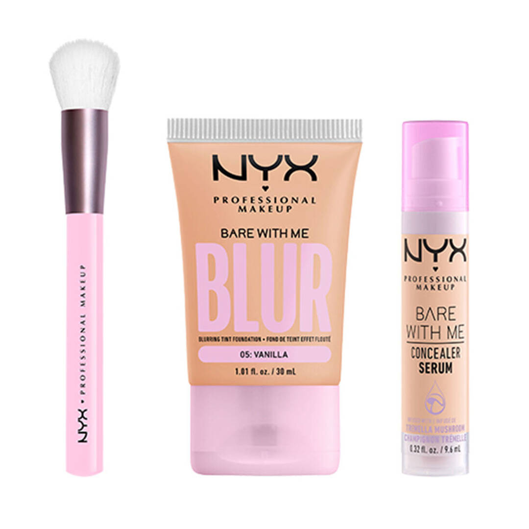 Ce coffret contient : • un pinceau fond de teint liquide Bare With Me Blur • un fond de teint effet flouté Bare With Me Blur • un sérum correcteur Bare With Me