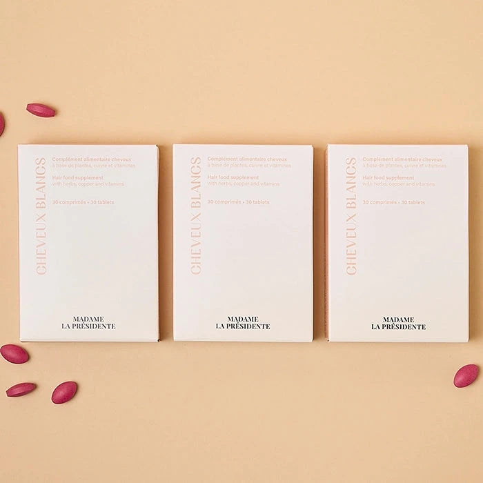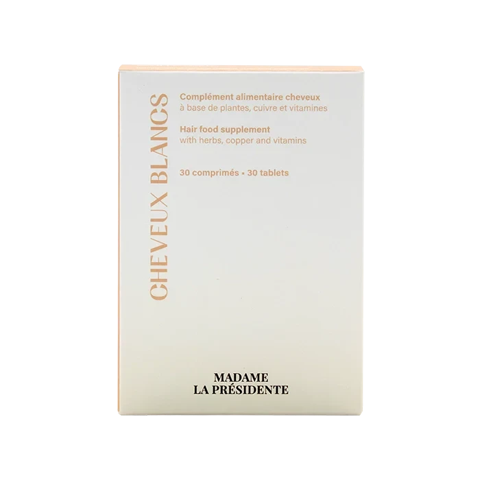 Grâce à sa composition, la cure 3 mois Cheveux blancs de Madame la Présidente aide à prévenir les changements liés à l’âge. Elle va contribuer à la pigmentation normale des cheveux.