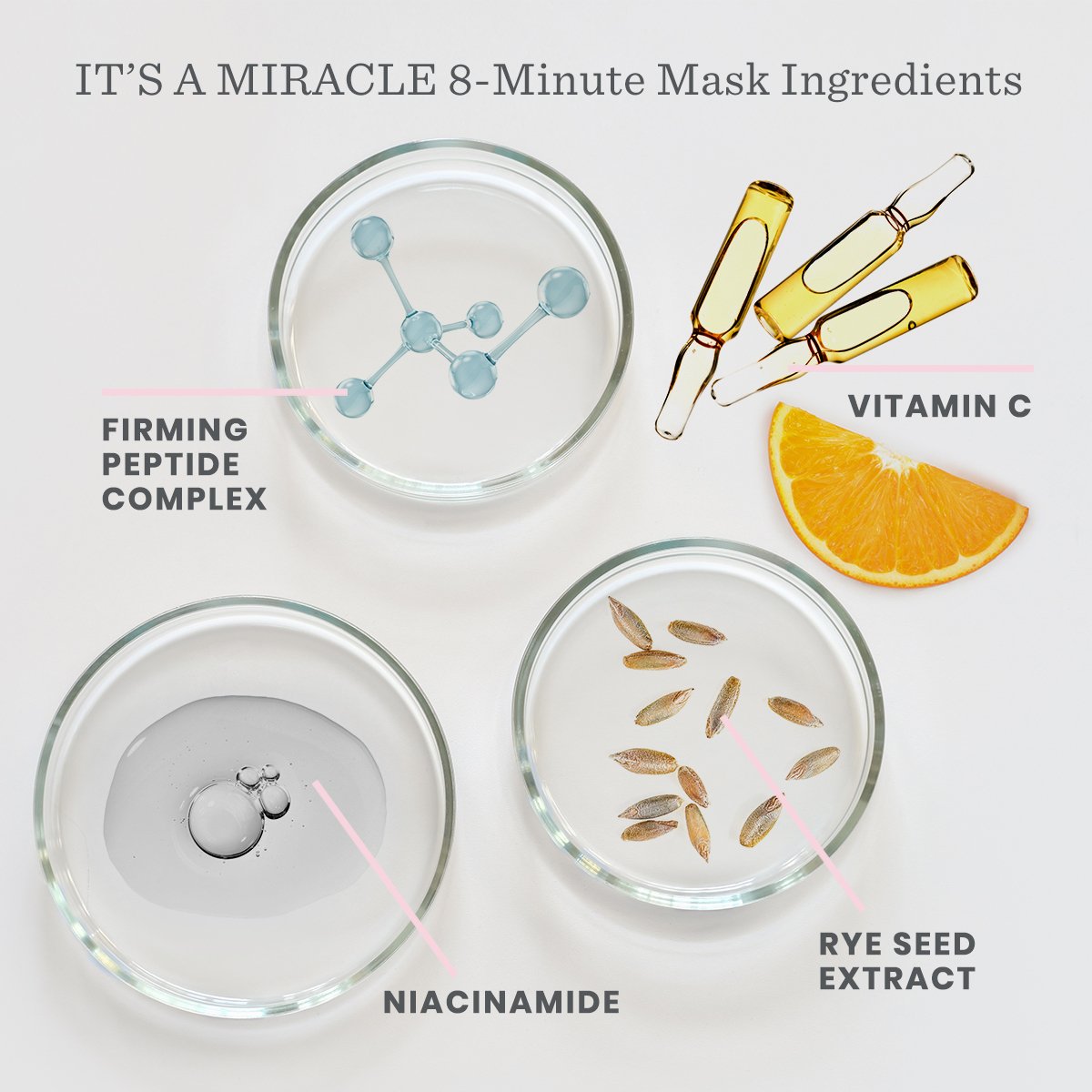 Your speedy shortcut to smooth, dewy, radiant skin. Our IT’S A MIRACLE 8 Minute Mask for face, neck, and hands instantly tightens, lifts, and blurs imperfections, then keeps the youthful-looking effect going for hours. This creamy treatment is chock full of skin-loving ingredients like vitamin C and niacinamide that deliver long-term benefits, too, so use it before an event for an instant complexion boost as well as twice a week to maintain soft, healthy skin.