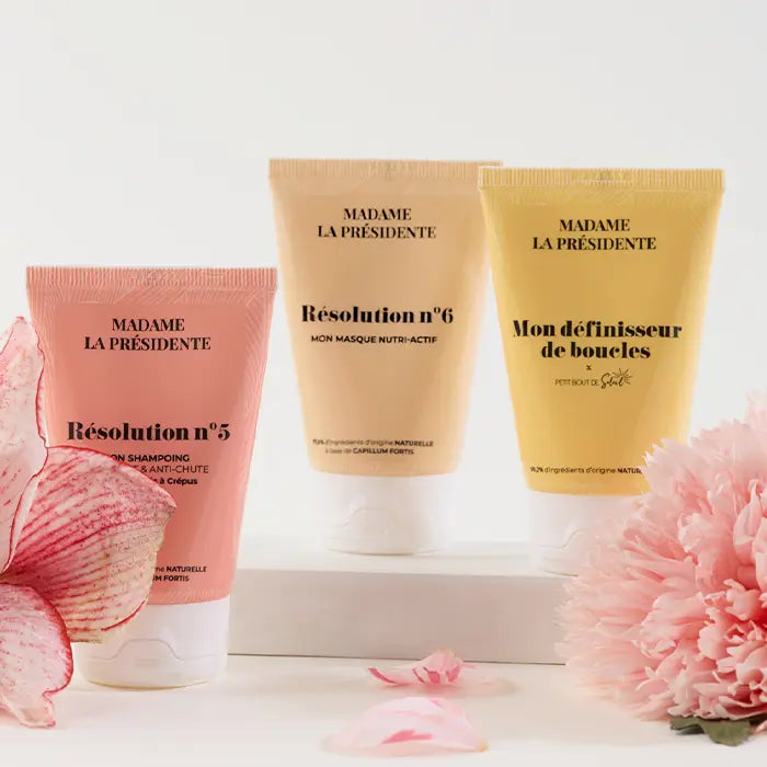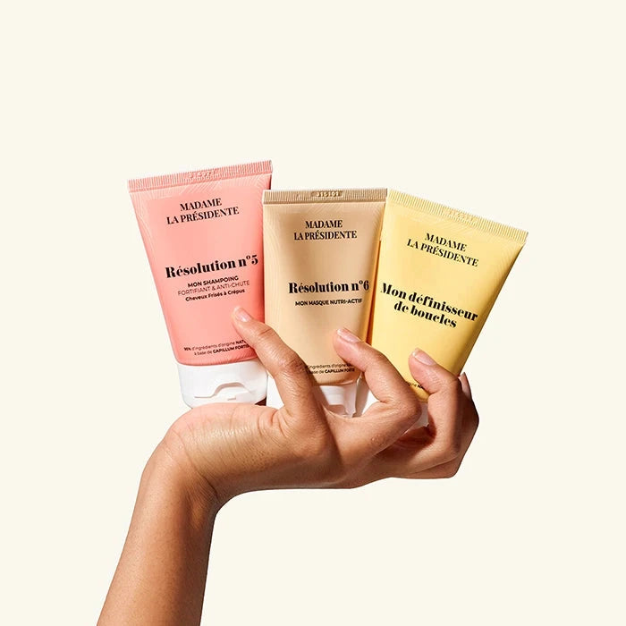 Notre trousse Nomade contient une routine de 3 soins capillaires indispensables pour renforcer, nourrir et définir vos cheveux frisés et crépus.