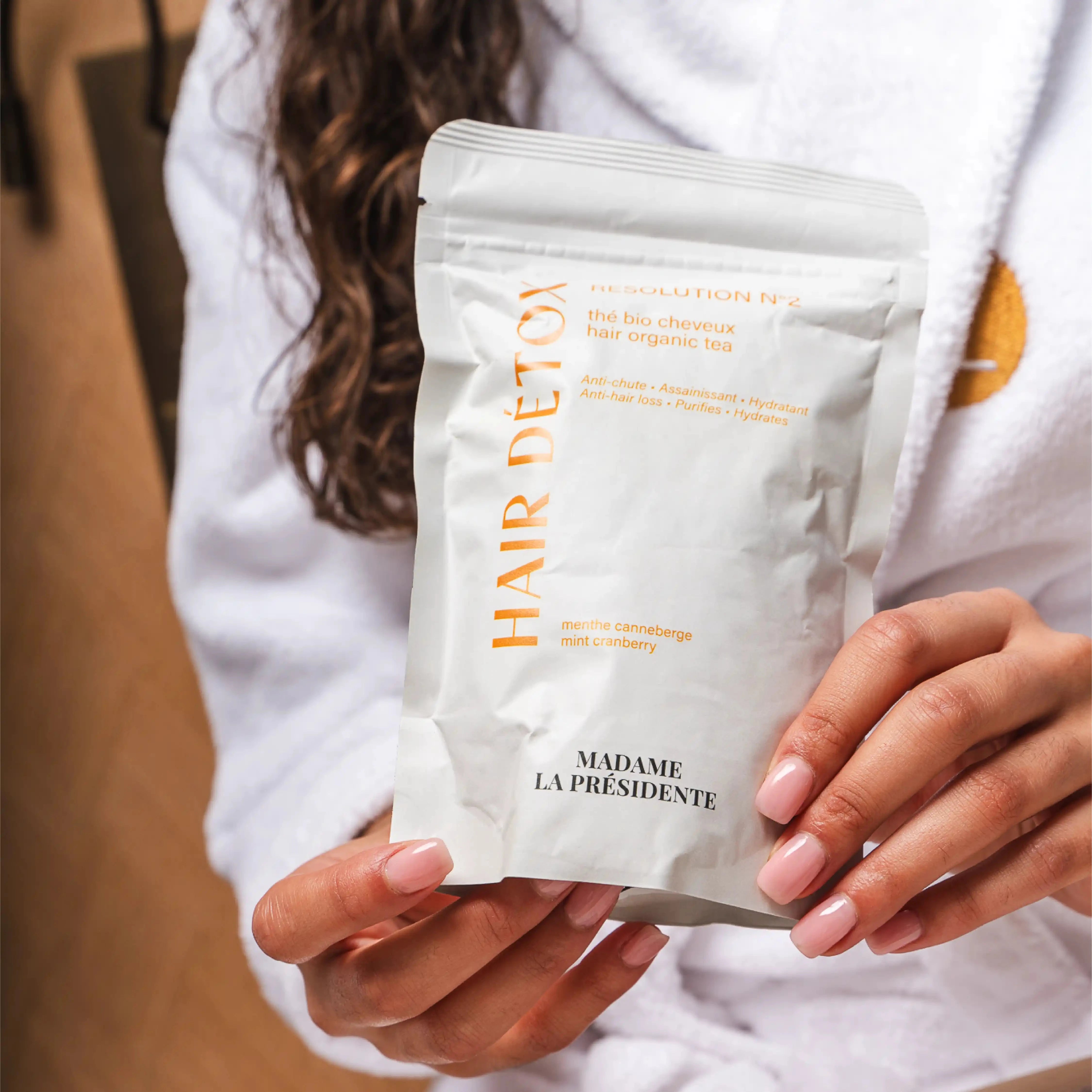Résolution n°2, le thé hair détox bio assainit les cheveux, purifie le cuir chevelu, lutte contre la chute de cheveux, élimine les pellicules.