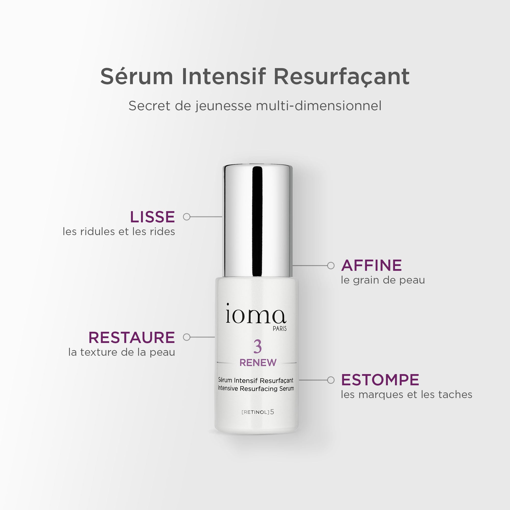 Le Sérum Intensif Resurfaçant aux 5 dimensions de rétinols, concentré dans le complexe [RETINOL]5 est conçu pour restaurer la qualité et la texture naturelle de la peau.